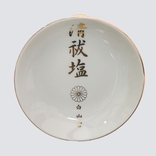 店舗入り口、ご家庭玄関に盛って戴く清め塩と専用皿(初回申込時のみ)を